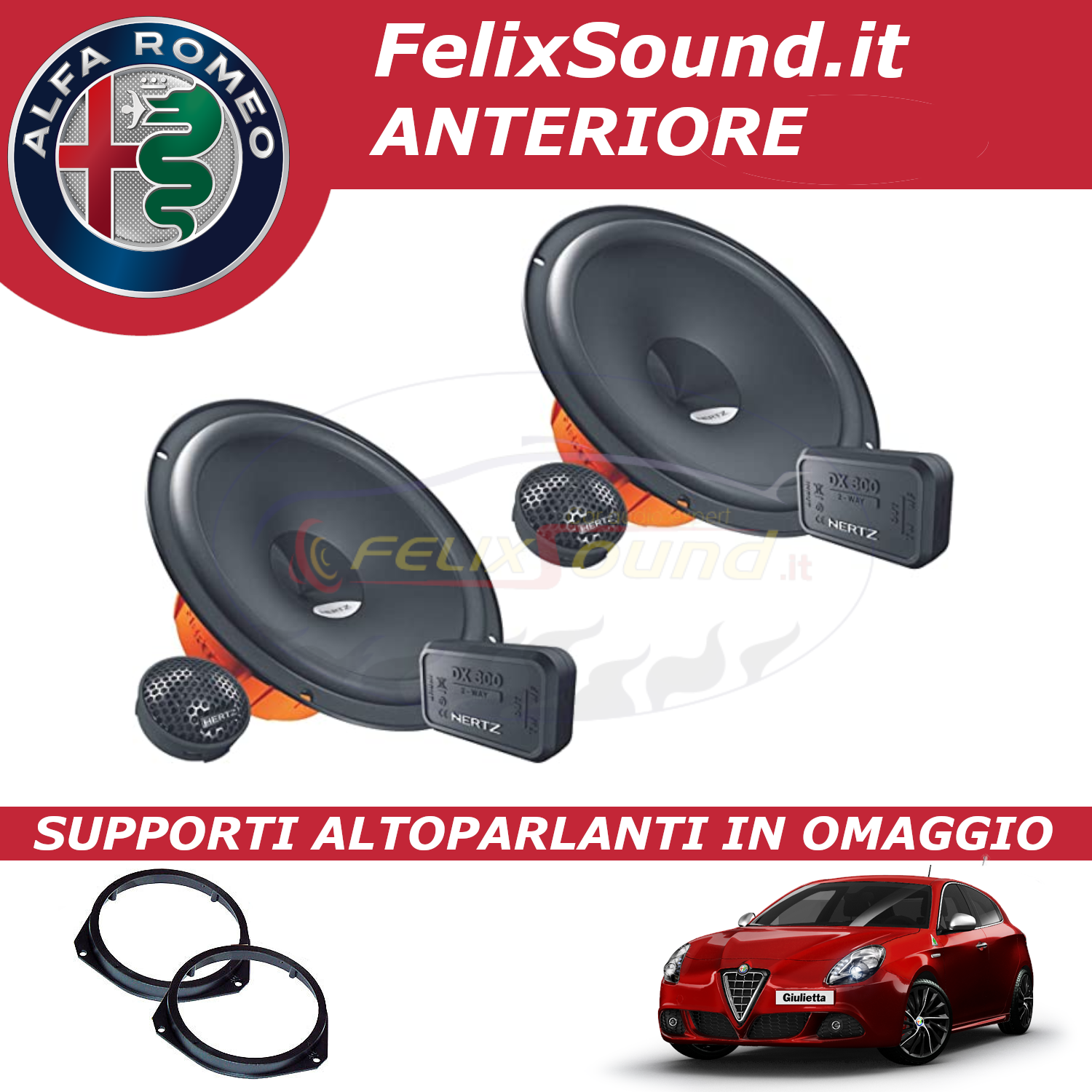 HERTZ DSK 165.3 Kit Alfa Romeo Giulietta + Supporti Altoparlanti Anteriori